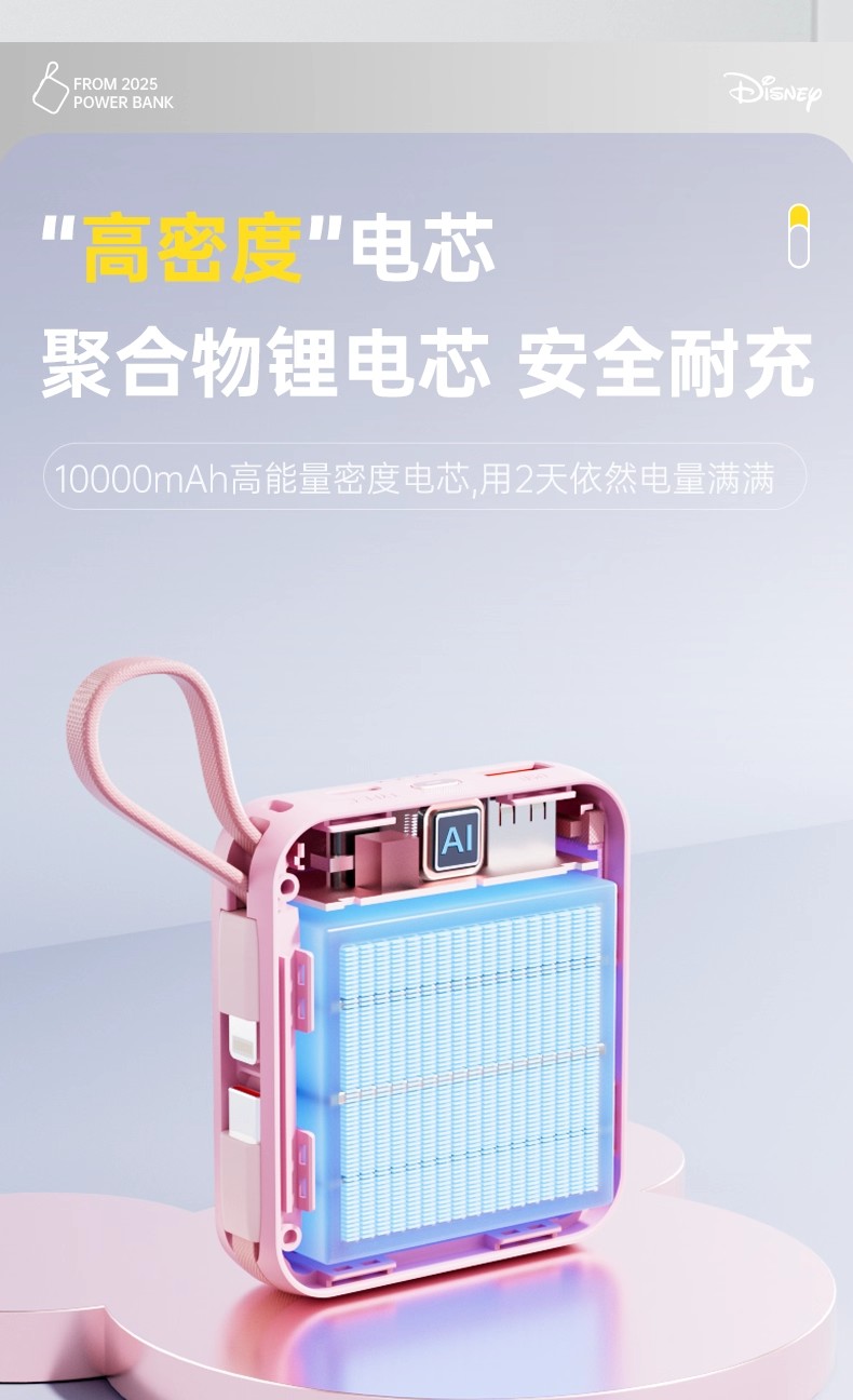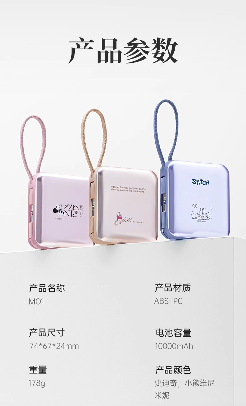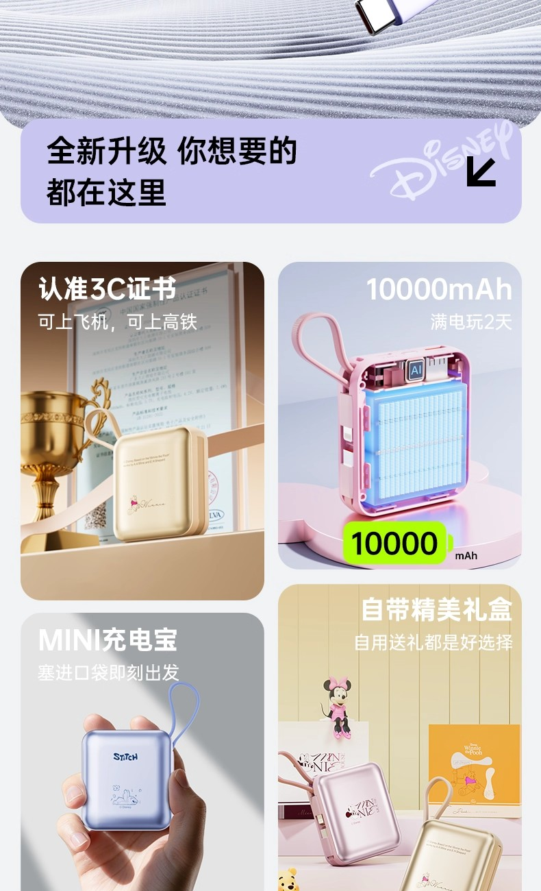 迪士尼自帶線快充移動電源M01【10000毫安】