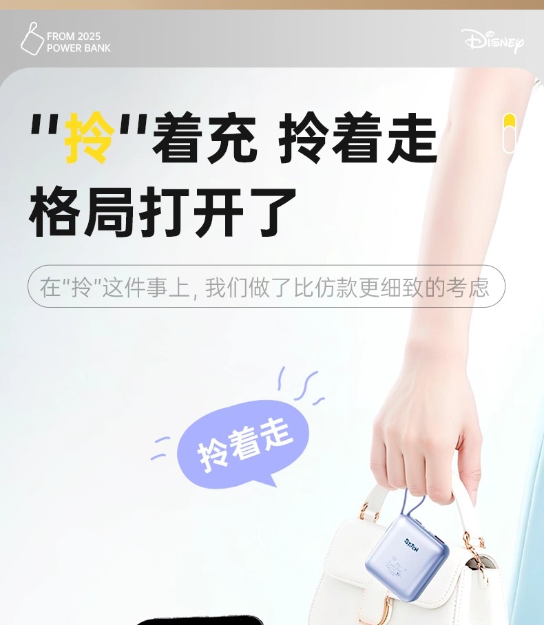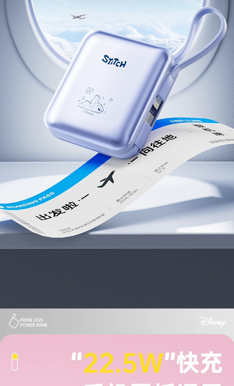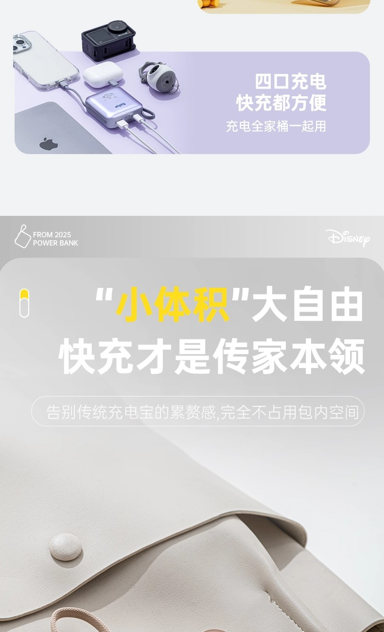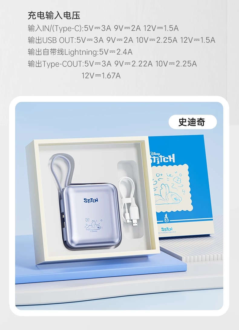 迪士尼自帶線快充移動電源M01【10000毫安】