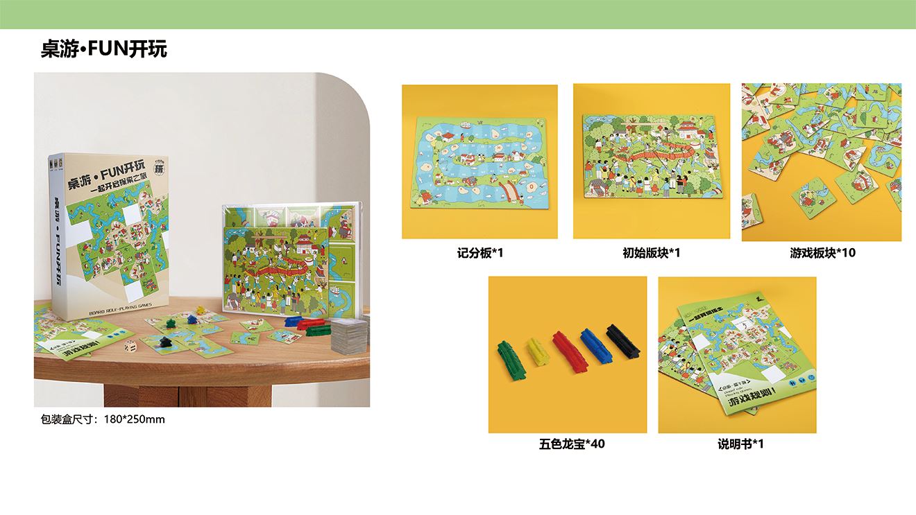 禮盒配置 包裝盒*1、記分板*1、初始版塊*1 說(shuō)明書(shū)*1、游戲板塊*10、五色龍寶*40
