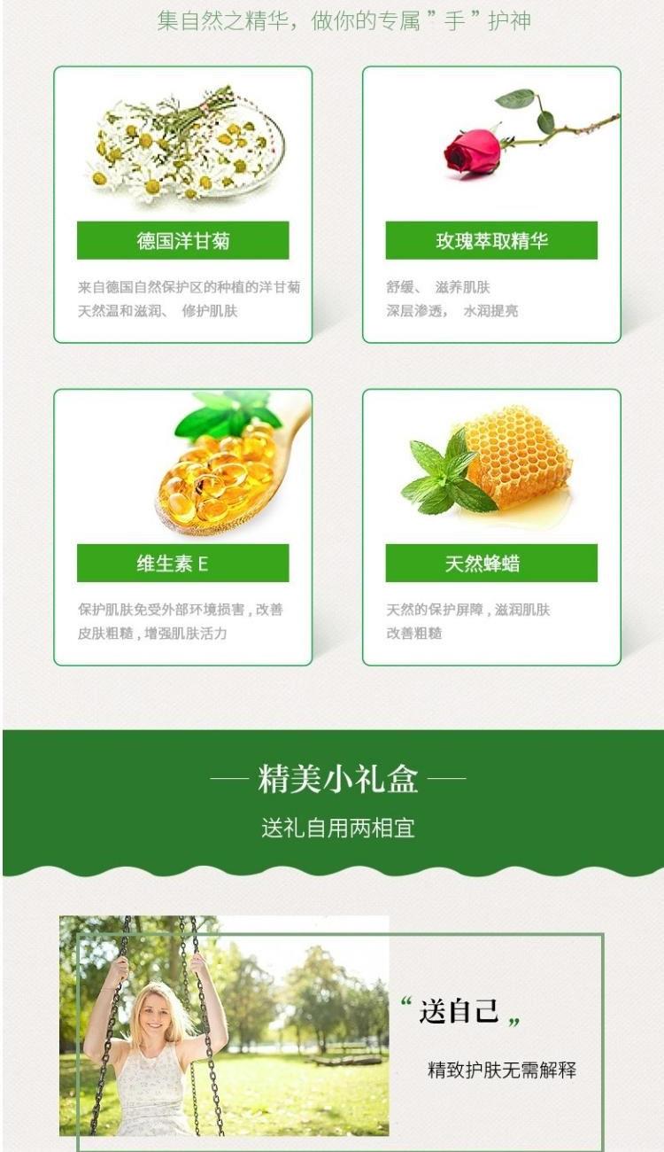 原產(chǎn)地:德國(guó) 規(guī)格:經(jīng)典護(hù)手霜20ml、清爽護(hù)手霜20ml、薰衣草護(hù)手霜20ml 功效:滋潤(rùn)手足、撫平粗糙、輕盈舒緩、補(bǔ)水防護(hù)、打造細(xì)化水嫩肌膚 保質(zhì)期:4年 適合膚質(zhì):所有肌膚 禮盒尺寸:13.5*13.5*3.5cm 條形碼:4013718983745