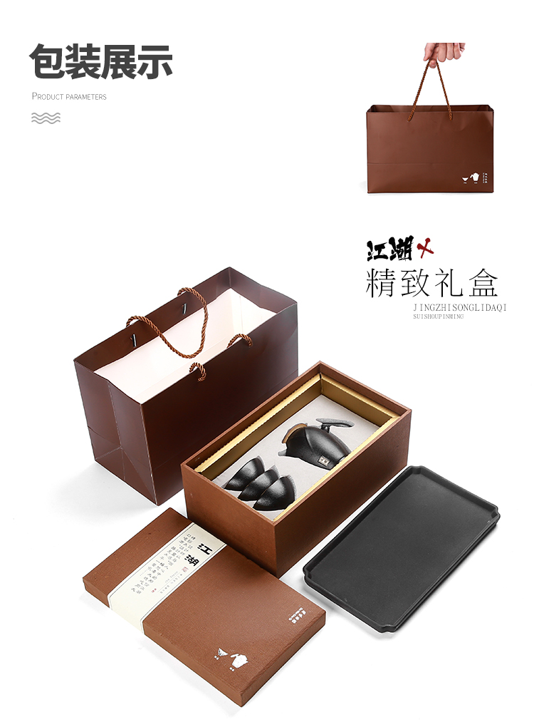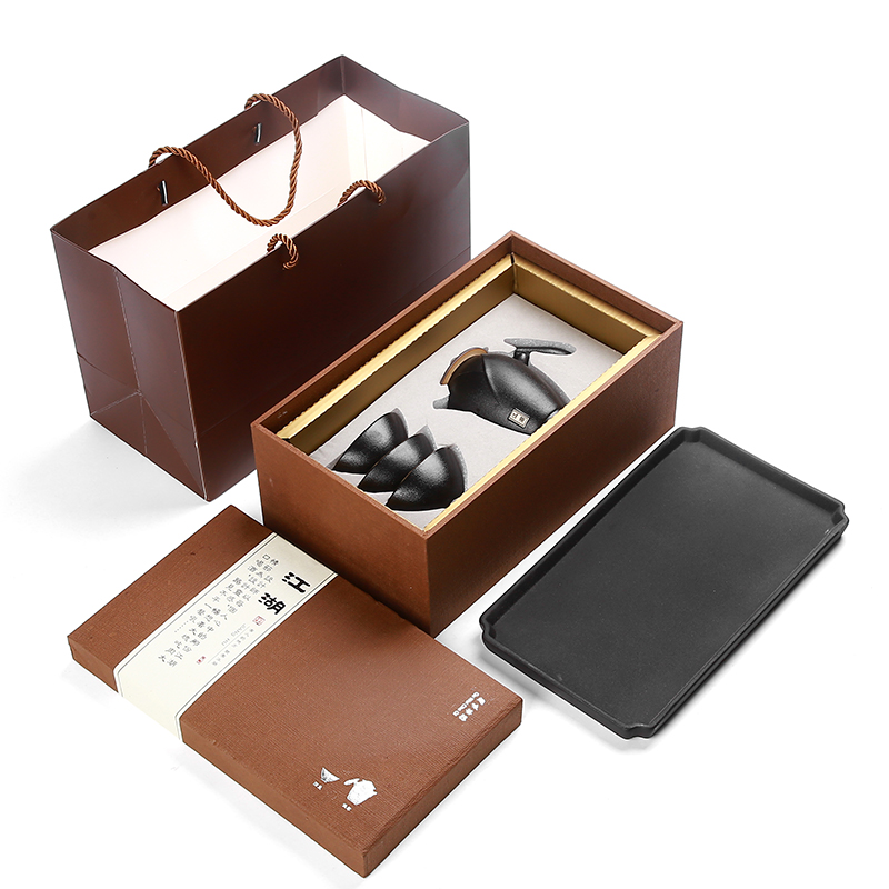 知者覺器-江湖小干泡黑陶瓷茶具盤套裝商務(wù)定制送禮品盒年貨長輩