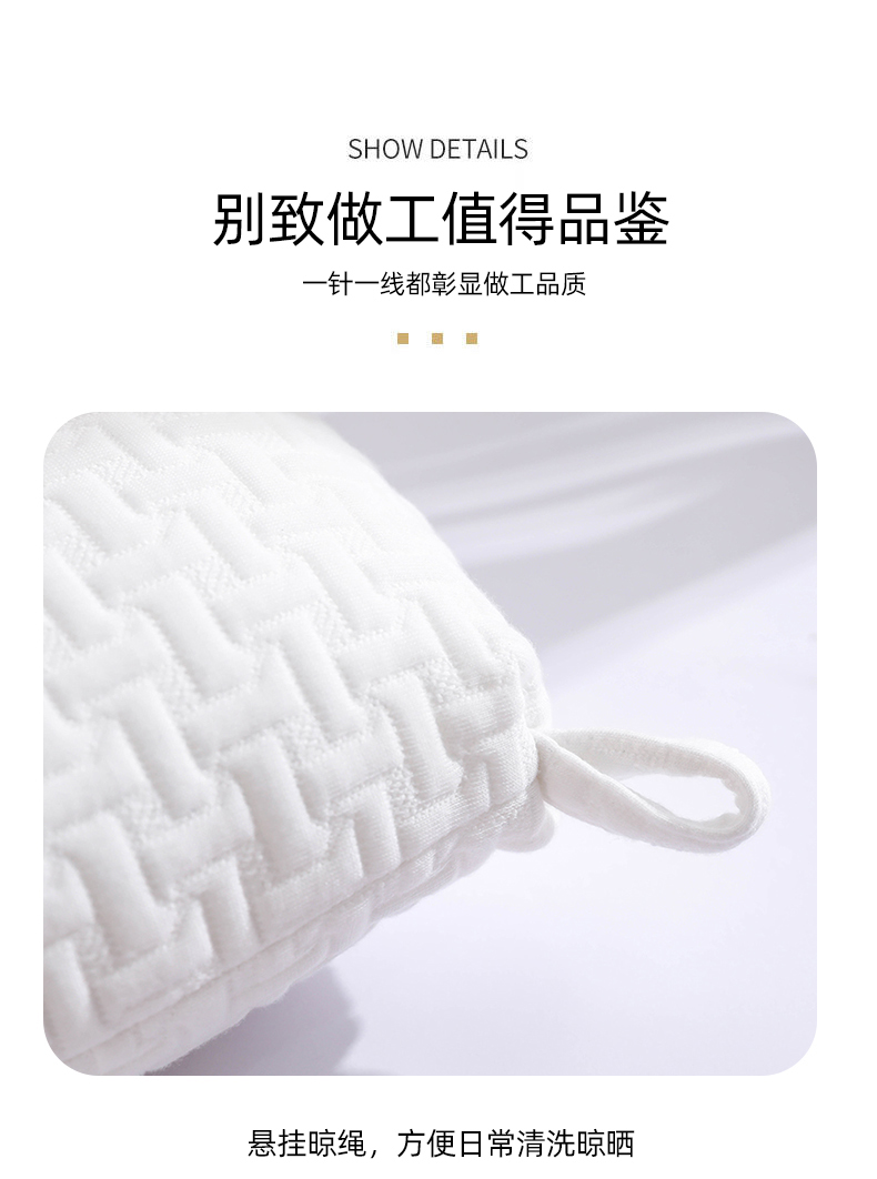 1.柔軟舒適,優(yōu)選針織棉面料,良好的呵護(hù)頸椎,舒適的睡眠時(shí)光。面料透氣網(wǎng)眼,不悶熱,稀釋透氣。驚喜絎縫,優(yōu)質(zhì)絎縫工藝,不拋料,品質(zhì)保障。