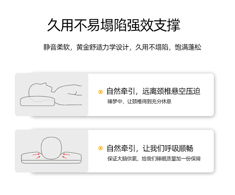 2.枕頭高彈力,貼合人體脊椎生長(zhǎng)曲度,仰睡側(cè)睡都可以,給您更好的承托力。