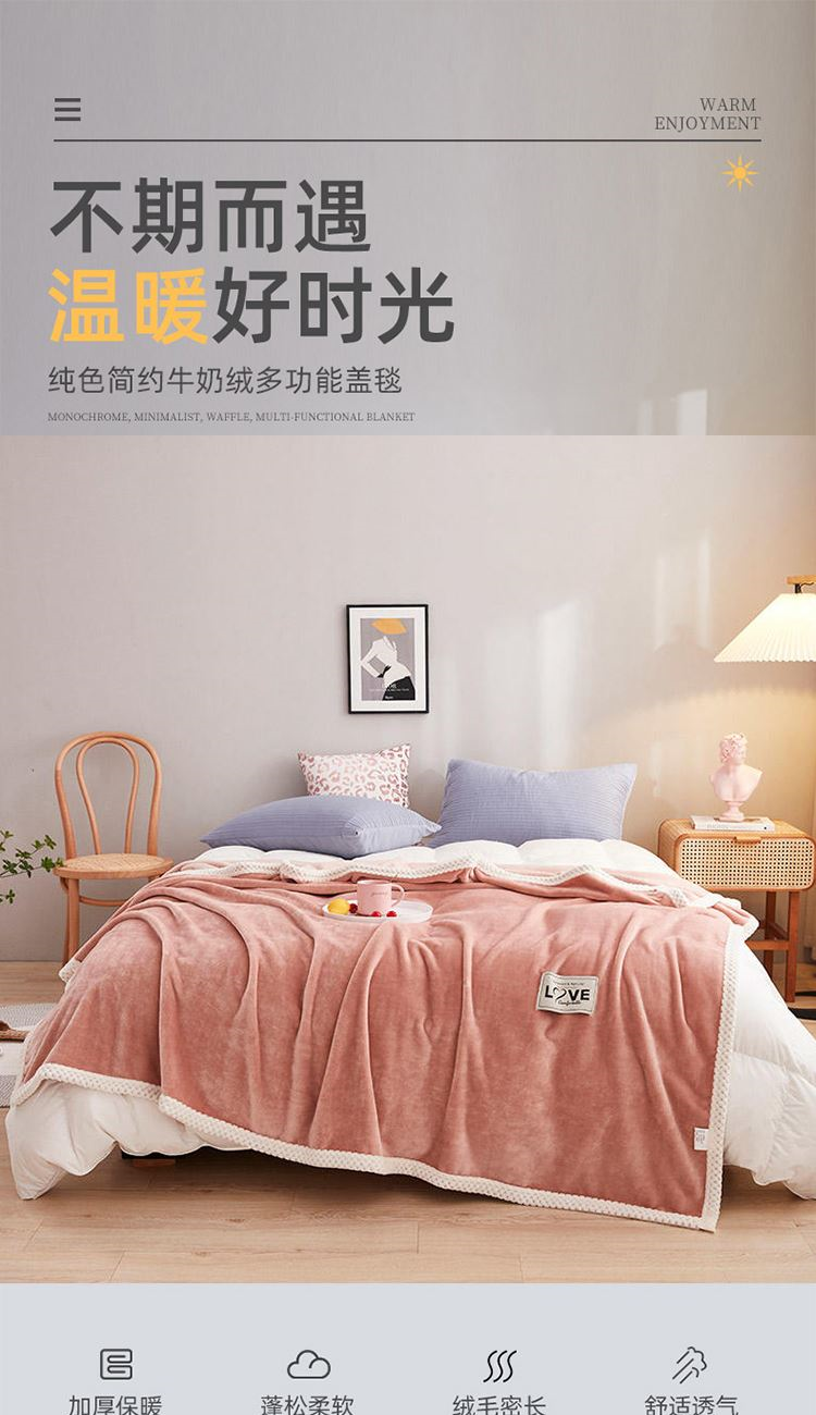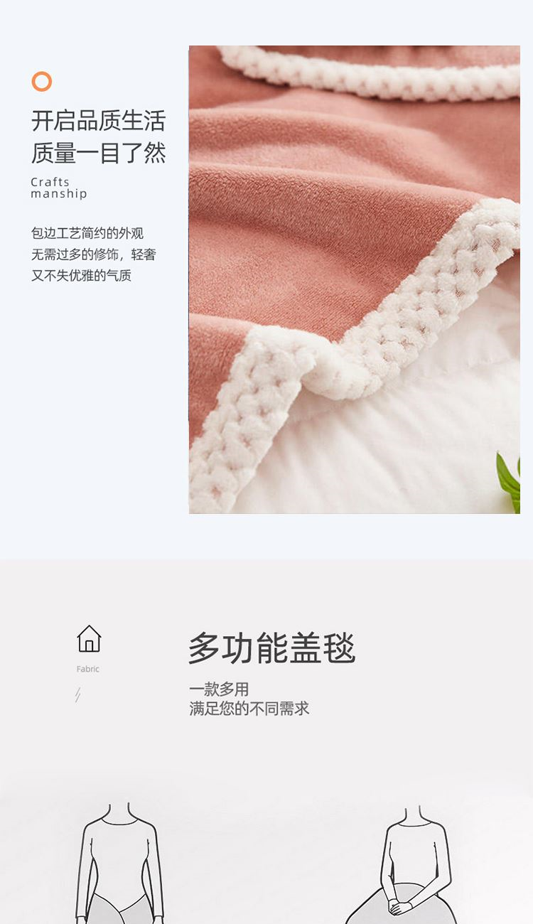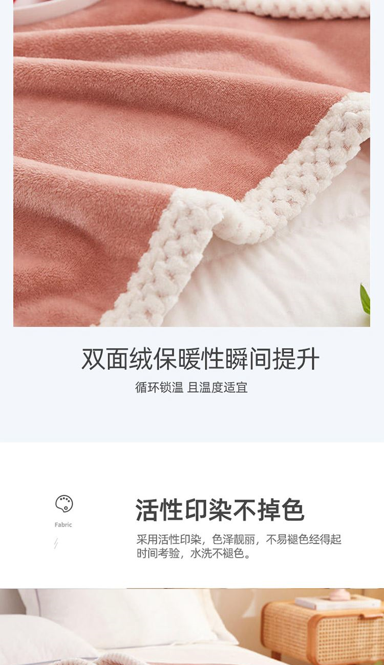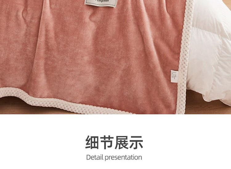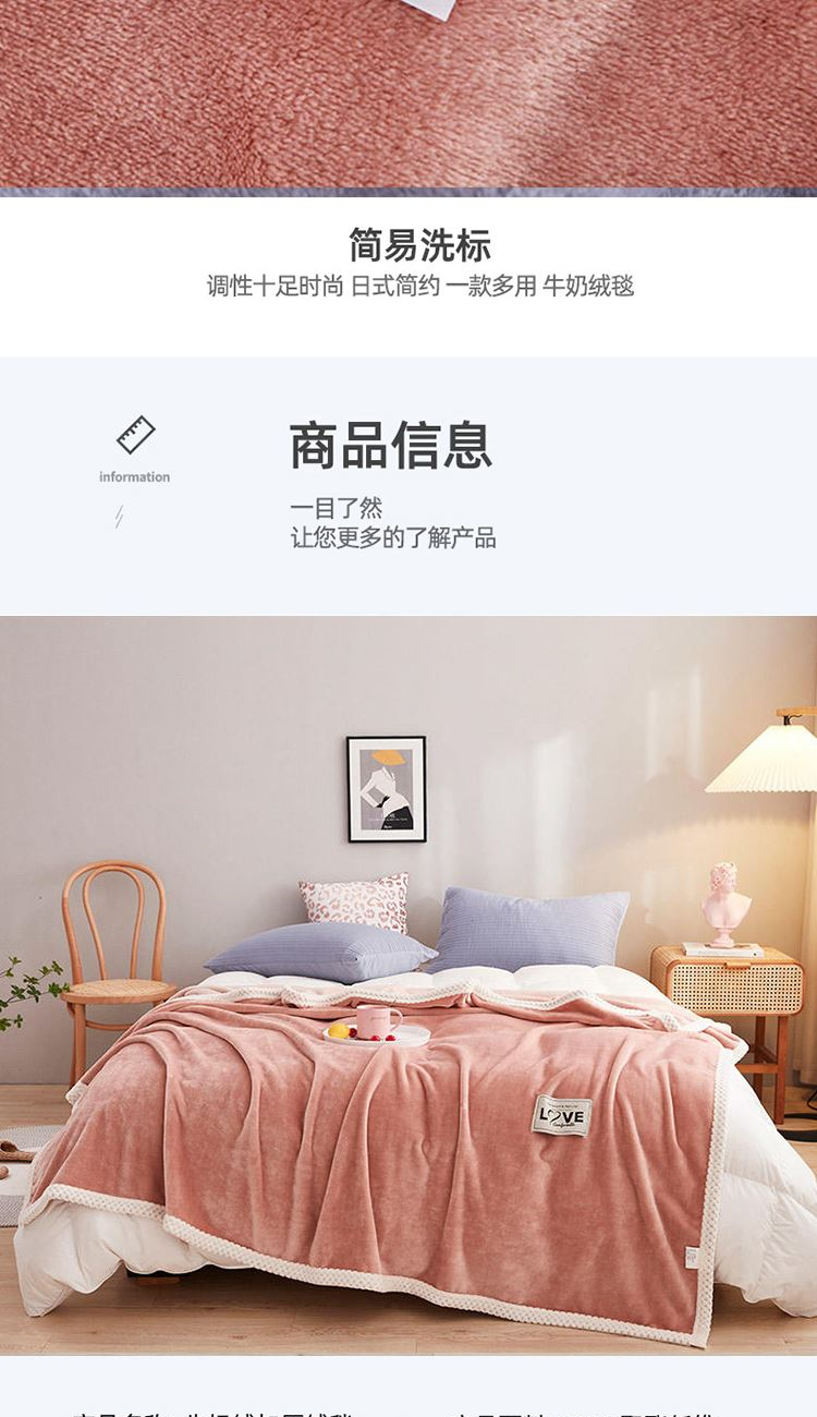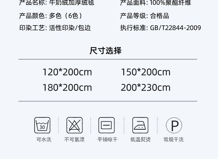 面料:牛奶絨(聚酯纖維) 邊料:貝貝絨 規(guī)格:180cm*200cm 包裝:精美手拎紙盒 牛奶絨是一種新型保暖纖維,具有保暖蓄熱功能,絨面豐盈,手感細(xì)膩絲滑,采用活性印染,色澤靚麗,不退色,不掉毛屑,精細(xì)做工采用貝貝絨包邊工藝,做工細(xì)密整齊,一毯多用,適用辦公居家環(huán)境,四季皆宜。