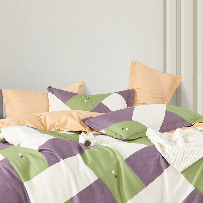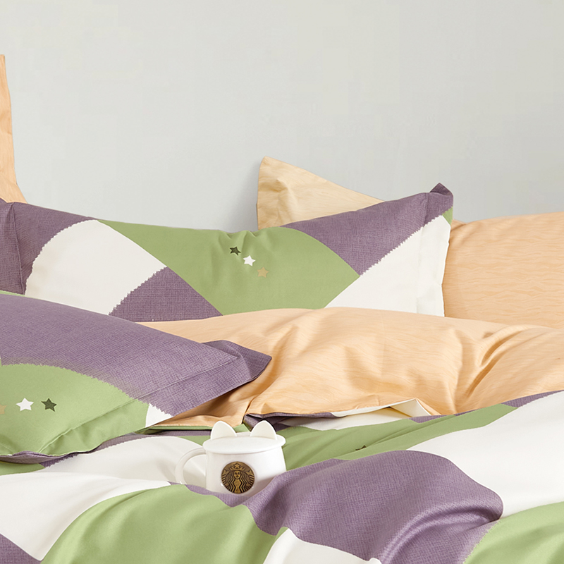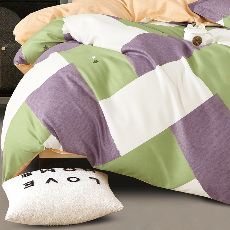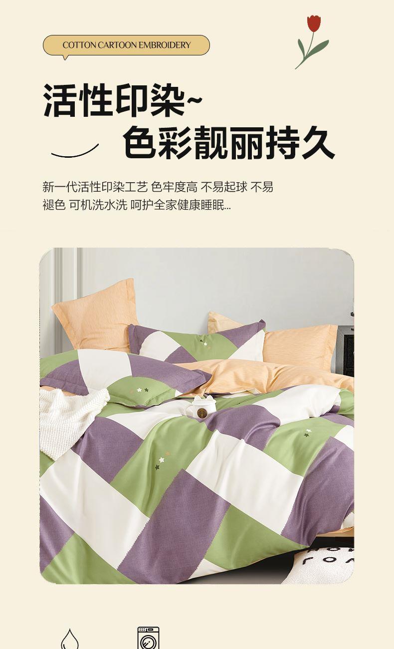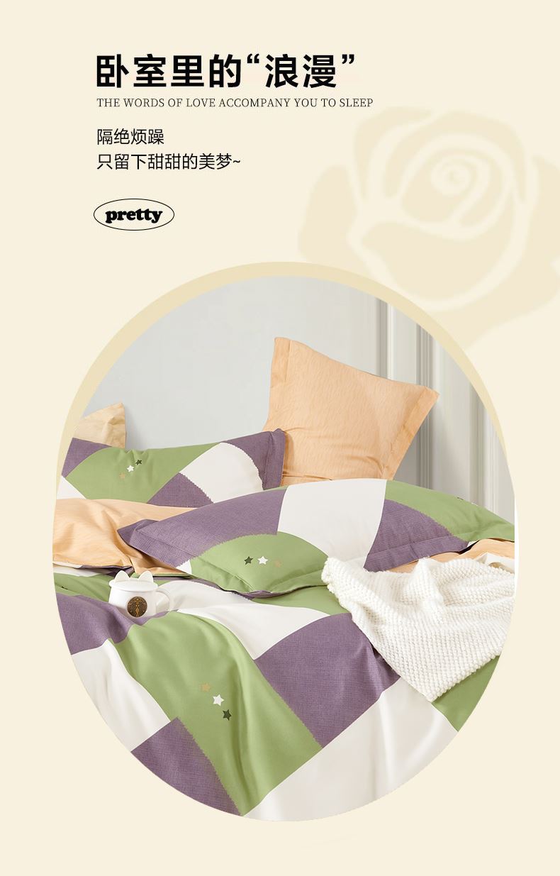 3.ab版設(shè)計(jì)一面多為繽紛印花,另一面則是清新純色,一條四件套可獲得兩種風(fēng)格體驗(yàn),隨心切換臥室氛圍。