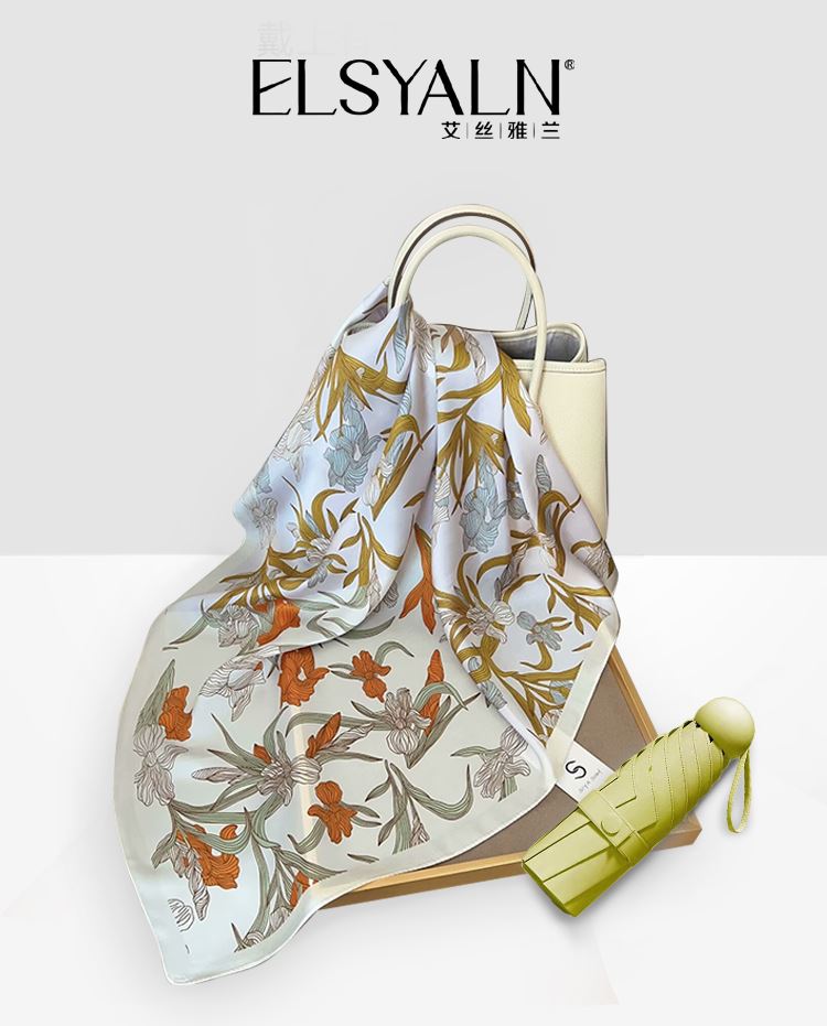 絲巾面料:絲綢 傘面料:黑膠布 手柄:ABS手柄