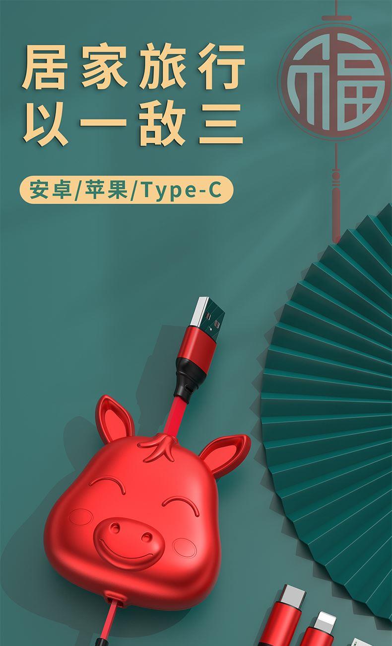 汐屹XY-085小福馬快充伸縮數(shù)據(jù)線 禮品已成功加入PPT!