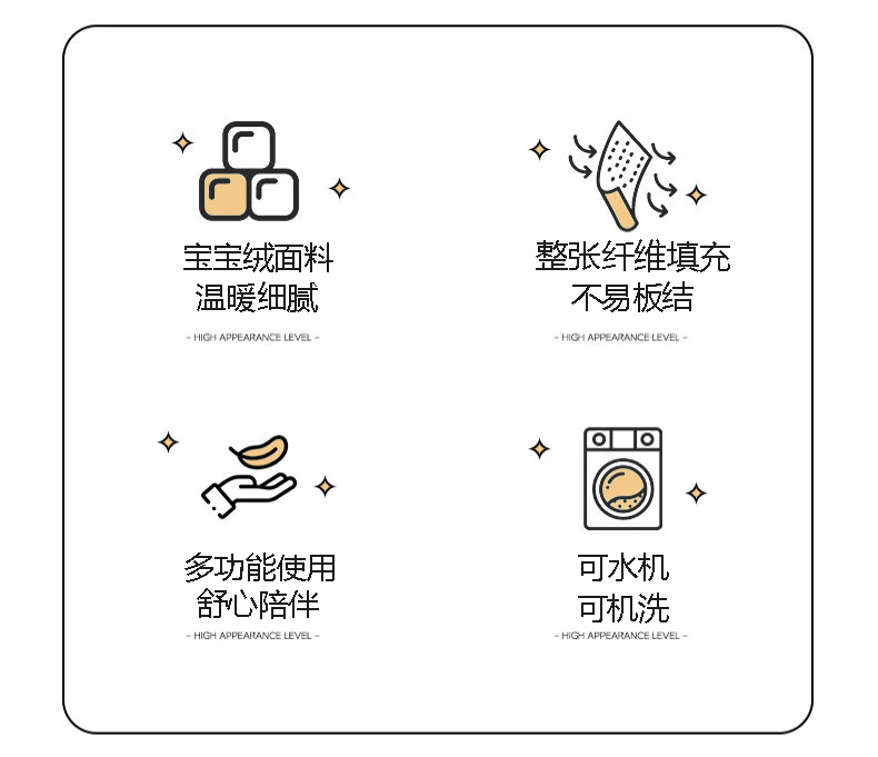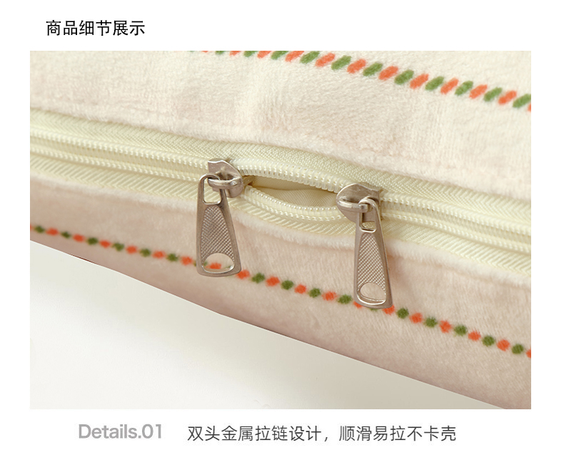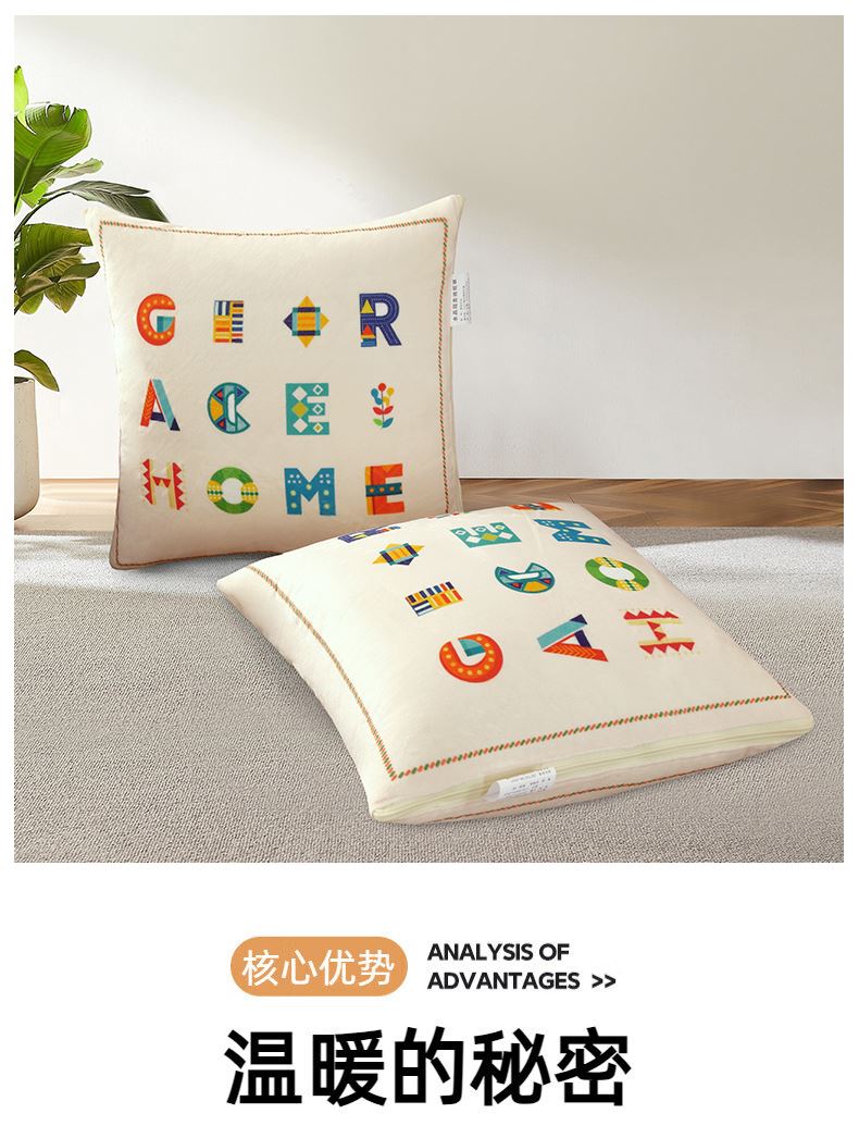 規(guī)格:40*40cm±5cm 展開:100*105cm±5cm 面料:寶寶絨 執(zhí)行標準:GB/T22796-2021 安全類別:GB18401-2010 B類 1.采用寶寶絨面料,顏色鮮艷、豐富、美觀大方,手感光滑流暢,洗滌后不收縮。 2.填充環(huán)保羽絲纖維,輕薄透氣,簡約而不簡單,適合貼身覆蓋, 3.抱枕被方便收納,折疊后可作為家居抱枕。