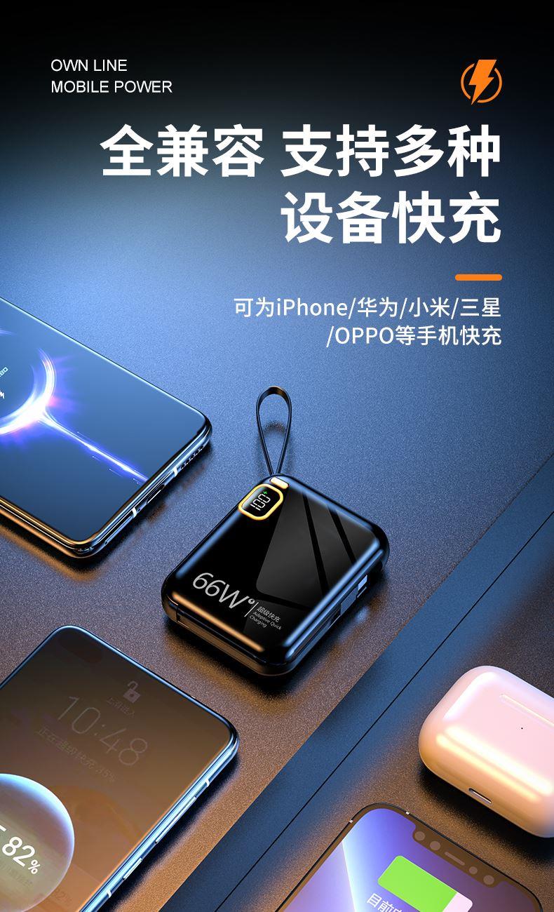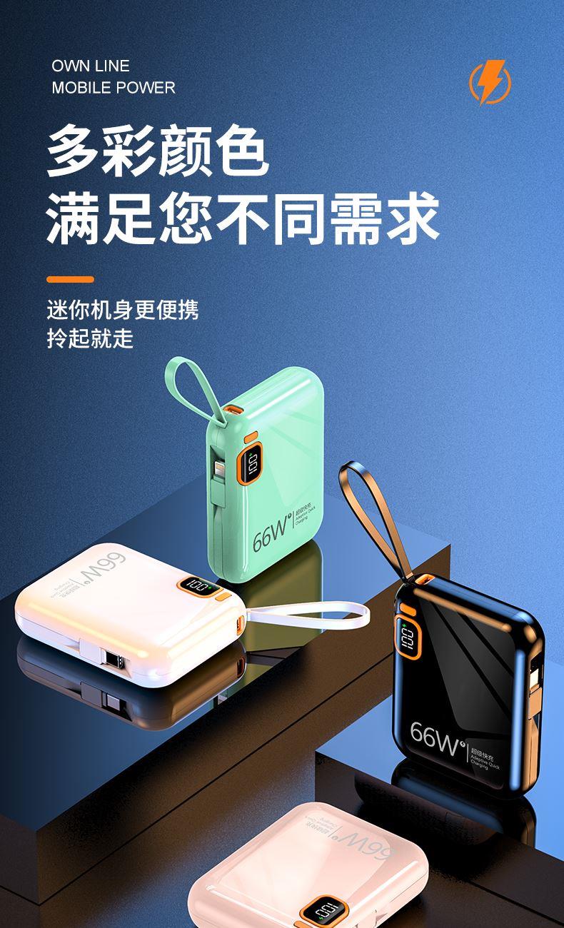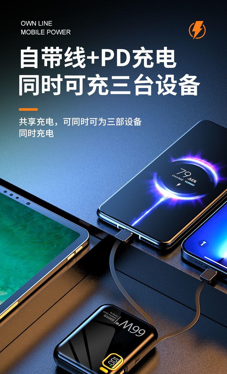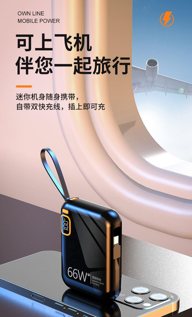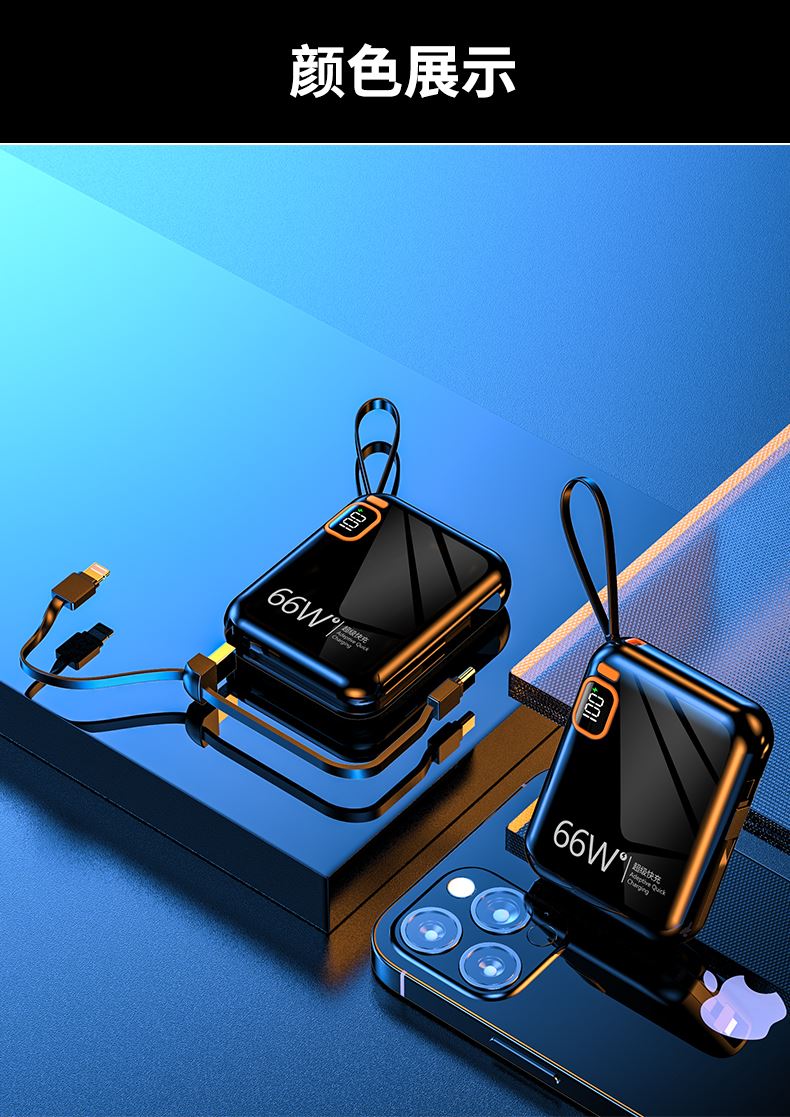 黛悅迷你自帶線66w閃充移動電源超級快充充電寶現(xiàn)貨秒發(fā)帶3c 禮品已成功加入PPT!