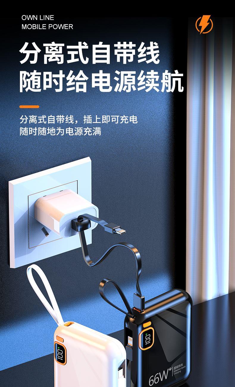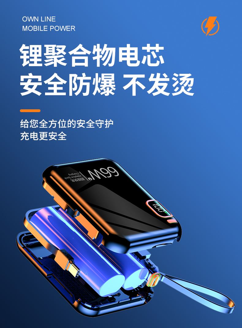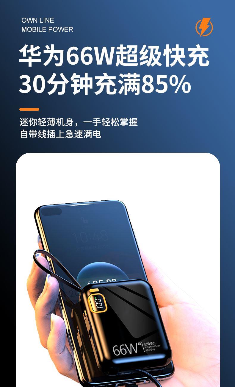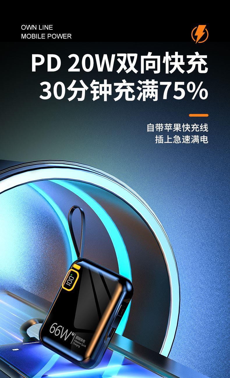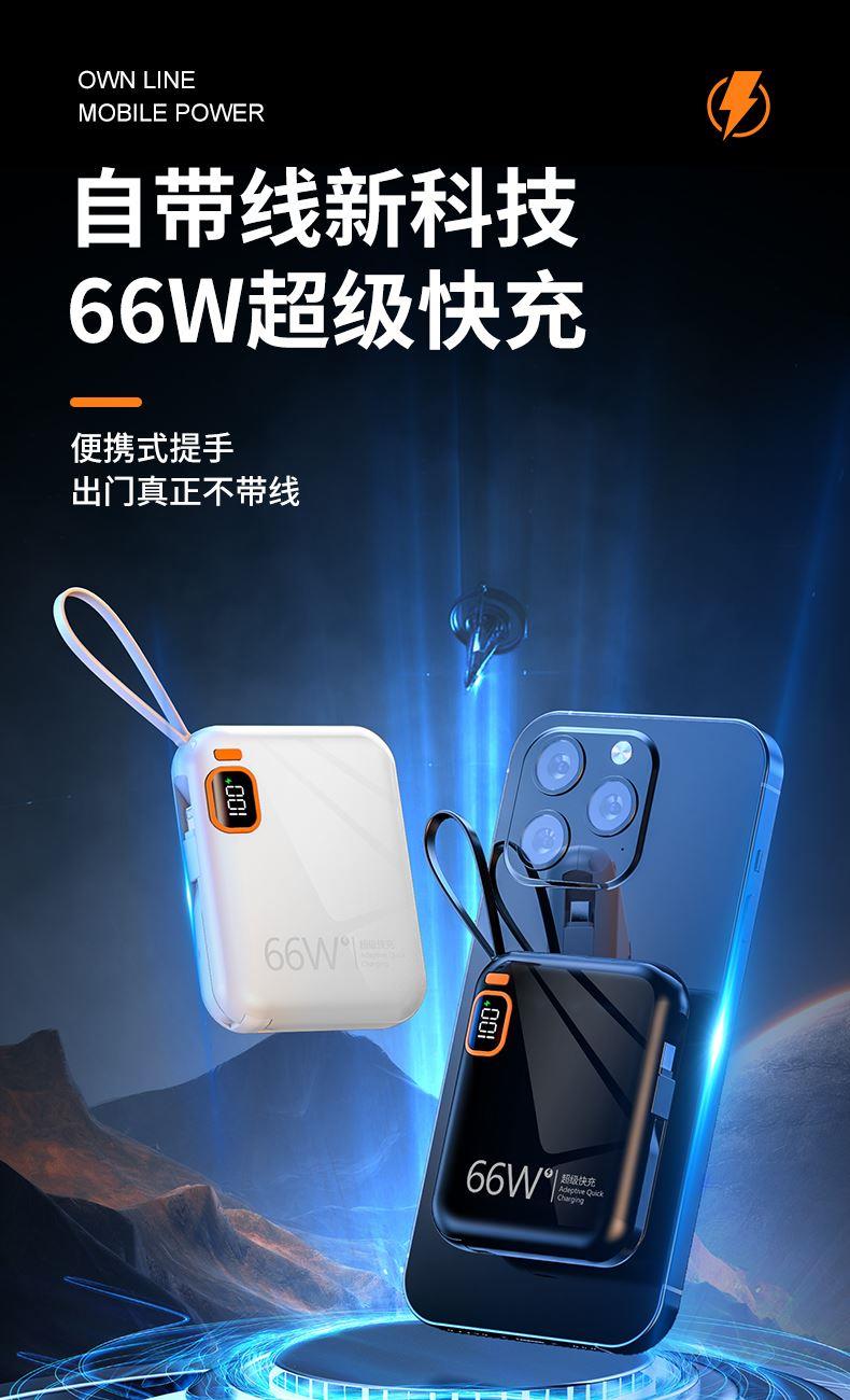 黛悅迷你自帶線66w閃充移動電源超級快充充電寶現(xiàn)貨秒發(fā)帶3c 禮品已成功加入PPT!