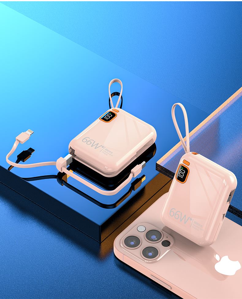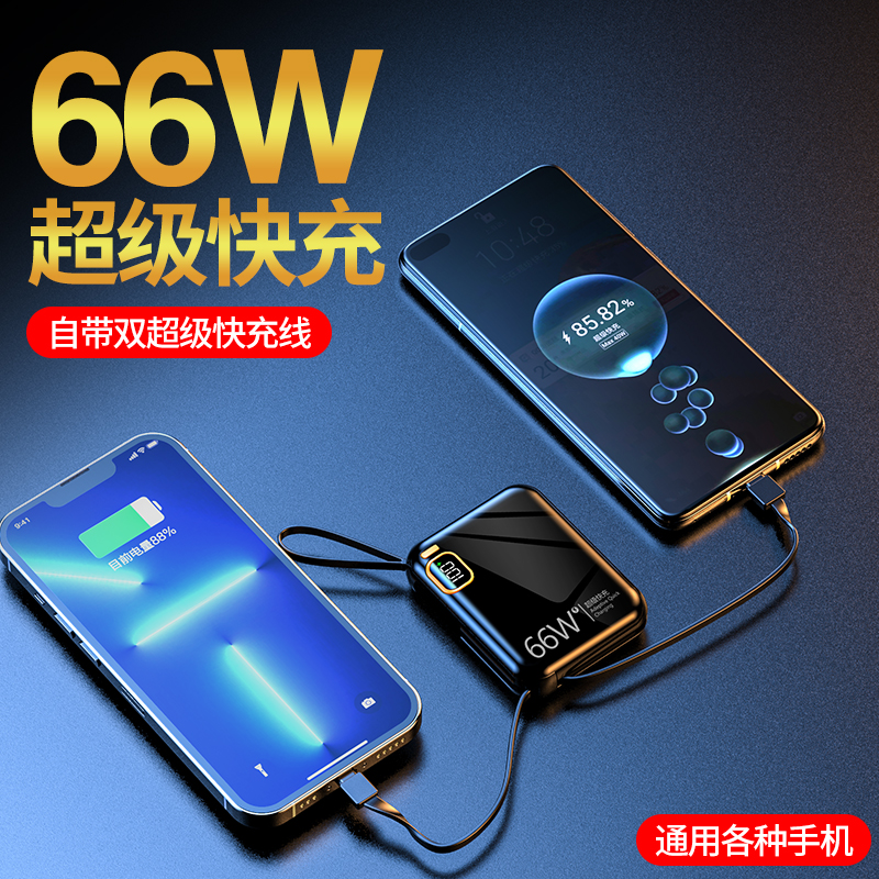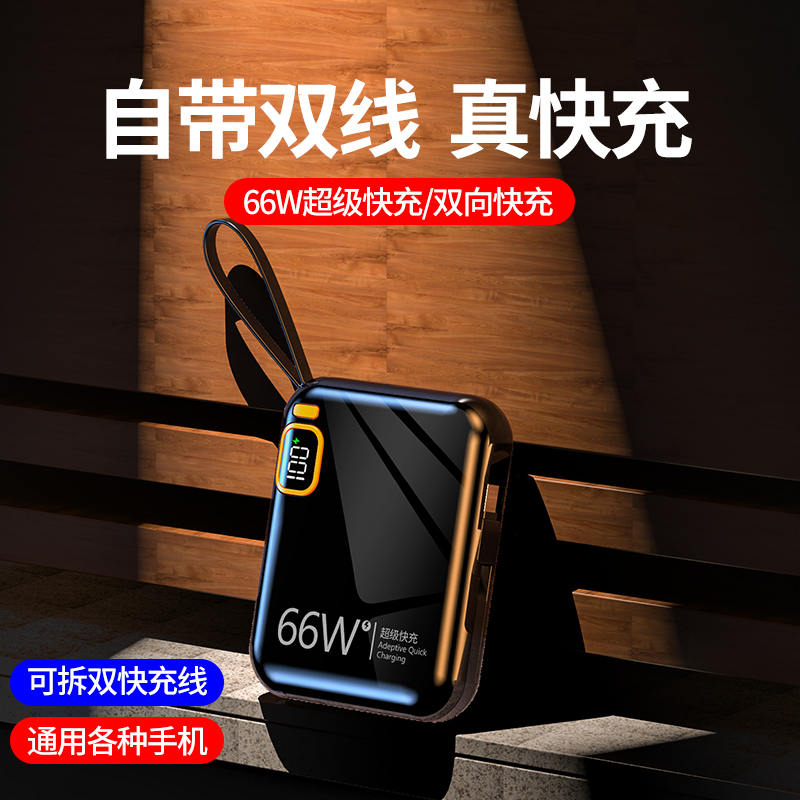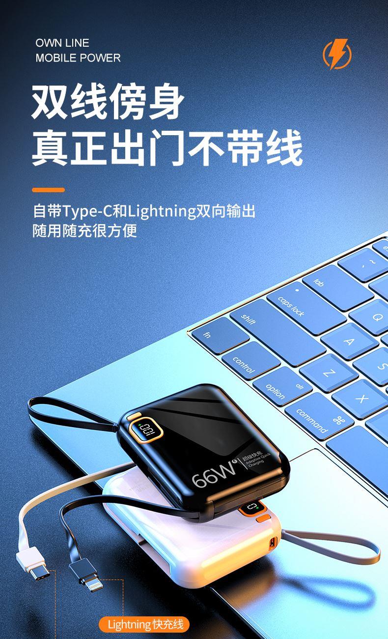黛悅迷你自帶線66w閃充移動電源超級快充充電寶現(xiàn)貨秒發(fā)帶3c