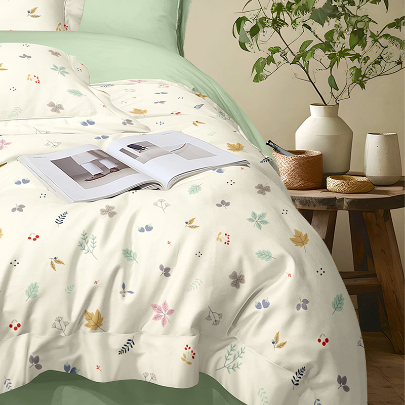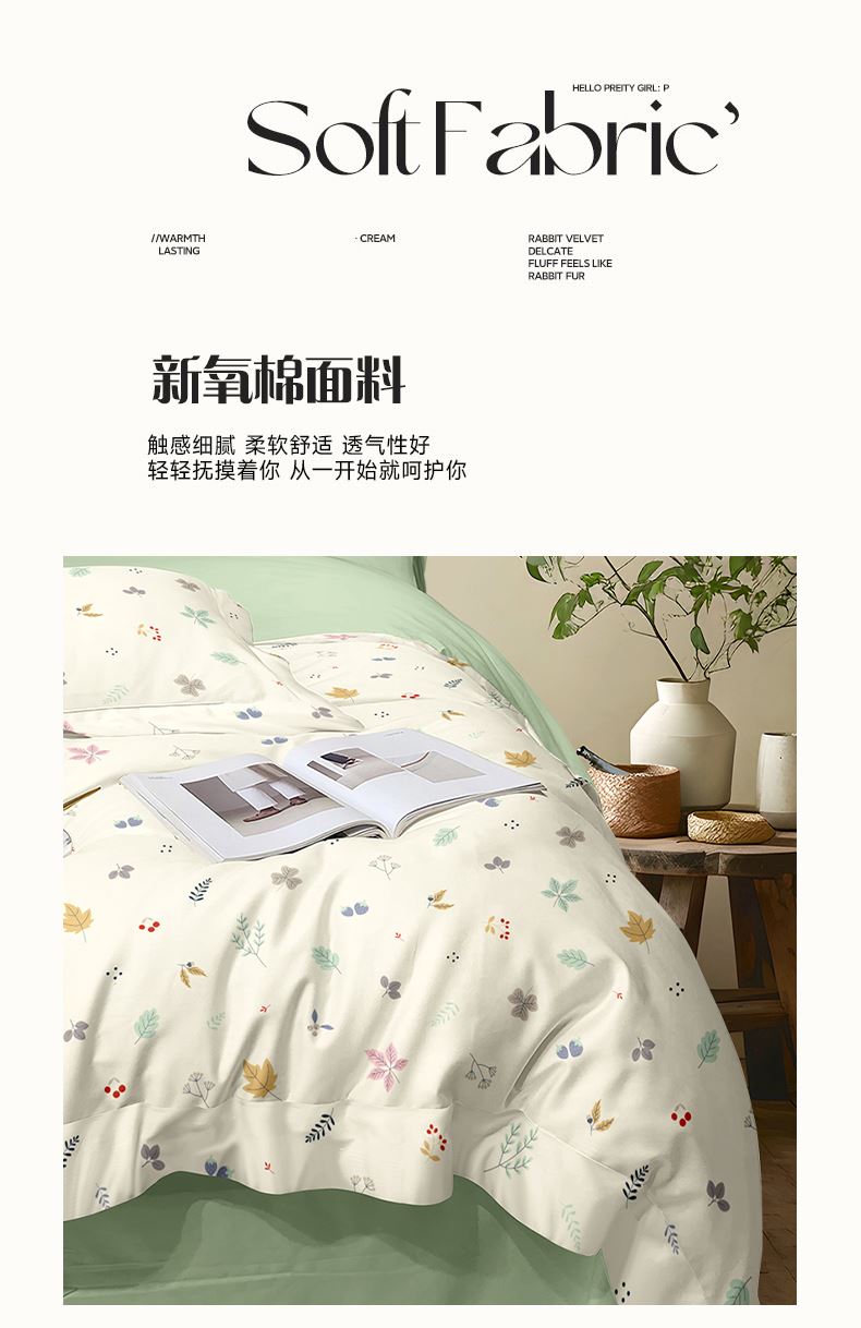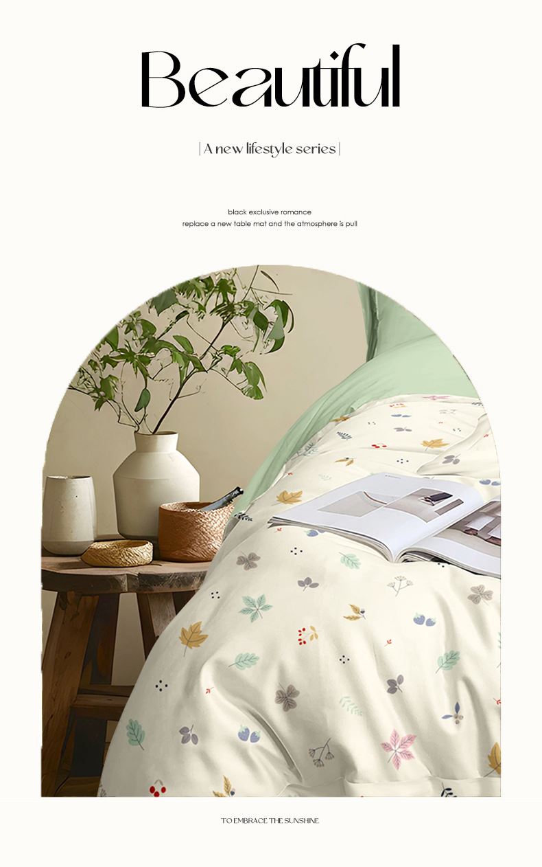 采用精選針織棉面料,以AB版雙面設(shè)計(jì)詮釋清新自然美學(xué)。面料擁有仿若舊T恤的柔軟觸感,經(jīng)緯交織的天然彈力讓被套更貼合被芯,帶來(lái)無(wú)拘束的睡眠體驗(yàn)。A面采用活性印染技術(shù)呈現(xiàn)清新花草圖案,B面搭配柔和的純色基底,正反翻轉(zhuǎn)即可切換臥室風(fēng)格。