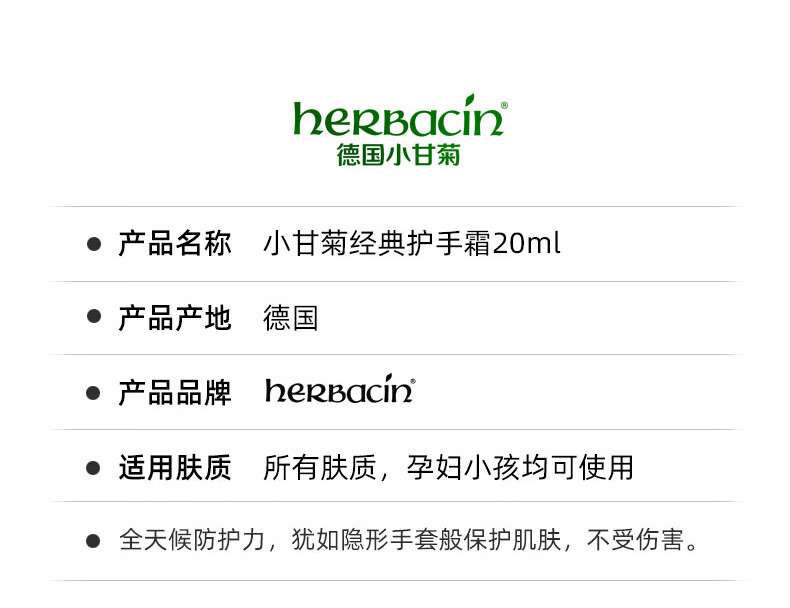 原產(chǎn)地:德國 規(guī)格:經(jīng)典護(hù)手霜20ml、清爽護(hù)手霜20ml、指甲刀 功效:滋潤手足、撫平粗糙、輕盈舒緩、補(bǔ)水防護(hù)、打造細(xì)化水嫩肌膚 保質(zhì)期:4年 適合膚質(zhì):所有肌膚 禮盒尺寸:13.5*13.5*3.5cm 條形碼:4013718981635