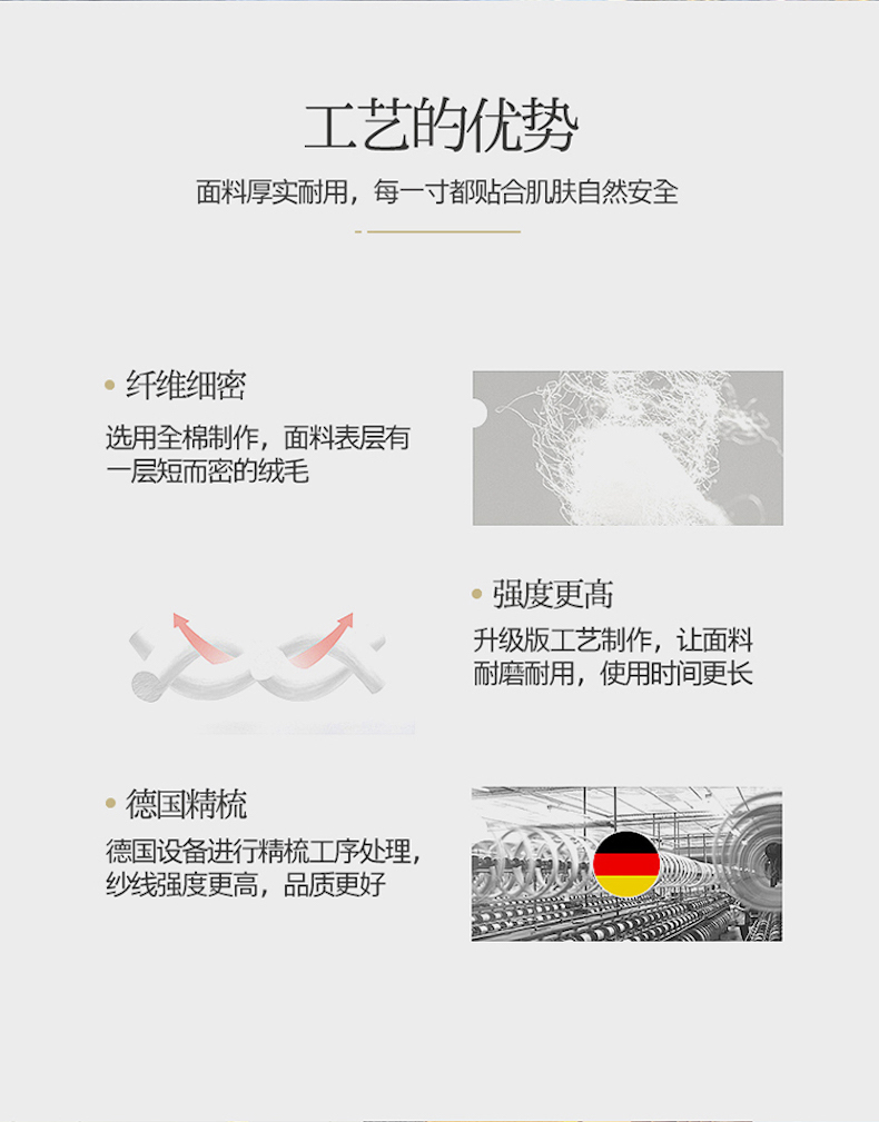 被套:200*230cm 床單:240*245cm 枕套:48*74cm*2 面料:全棉 執(zhí)行標準:GB/T22796-2021 安全類別:GB18401-2010 A類 1.甄選優(yōu)質(zhì)長絨棉,以歐式簡約美學詮釋現(xiàn)代寢居藝術。面料采用80支高密緞紋工藝,觸感如天鵝絨般絲滑垂順,表面流淌著溫潤的珍珠光澤。經(jīng)緯交織間形成天然透氣孔洞,平衡了細膩質(zhì)感與透氣特性,帶來云端般的親膚體驗。