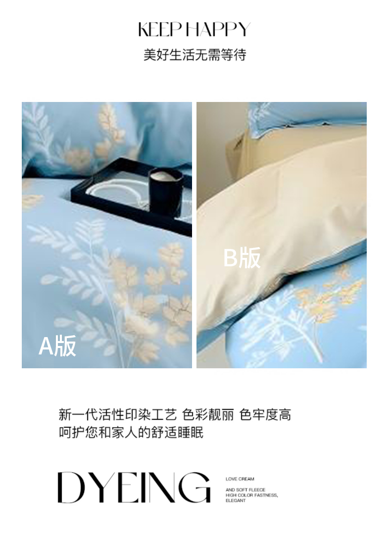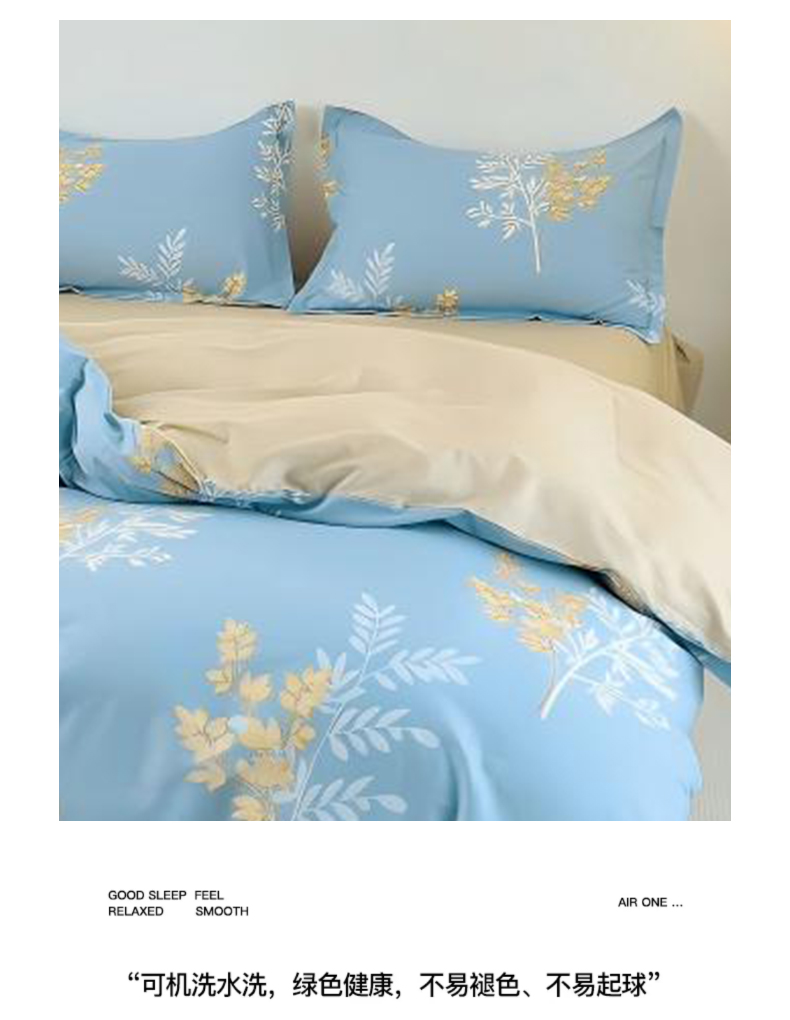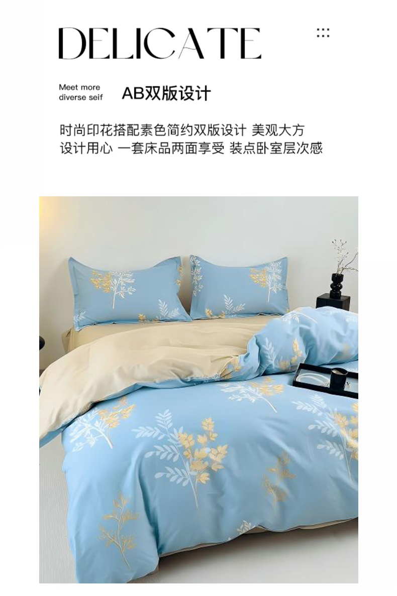 2.生態(tài)活性印染,圖案色牢度高,久洗仍保持鮮艷如新。AB版雙面設計巧妙融合現代美學,輕松匹配各種臥室裝修風格。