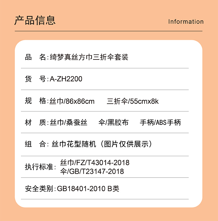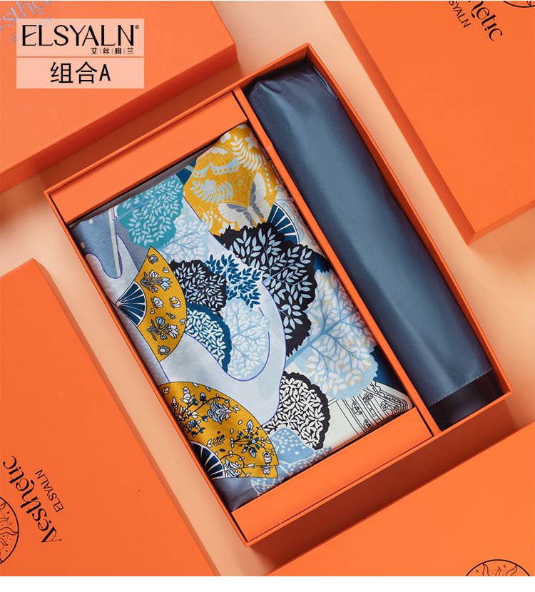 艾絲雅蘭A-ZH2200綺夢真絲方巾三折傘套裝 禮品已成功加入PPT!