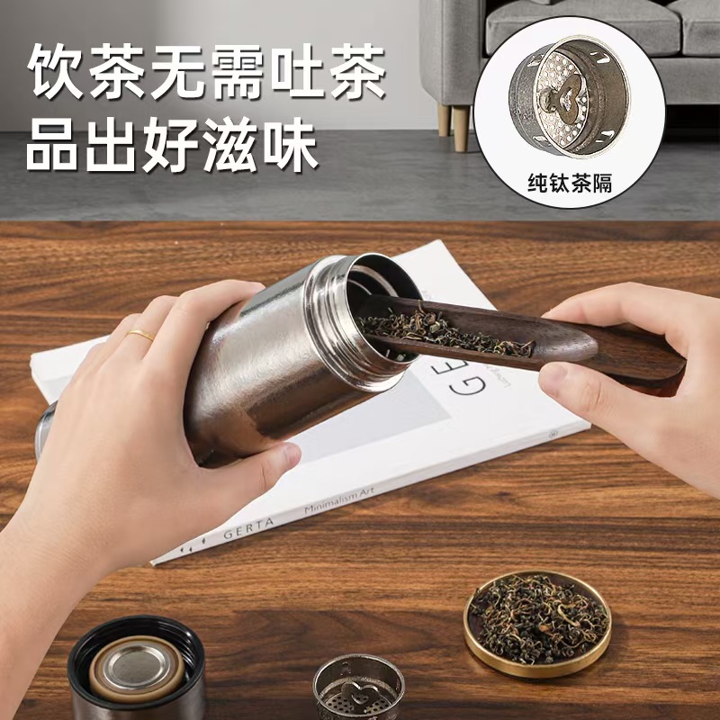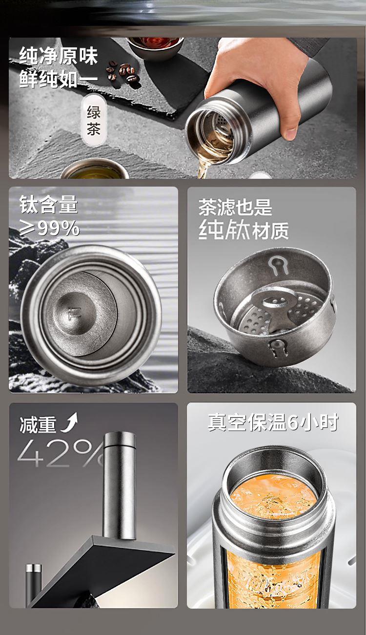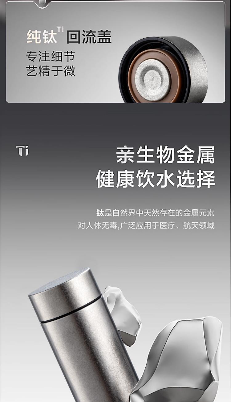 保溫杯容量:480ML 材質(zhì):99.98%純鈦 顏色: 本色 包裝:禮盒 品質(zhì):精品杯 ?選用航天材質(zhì)純鈦環(huán)保保新功能,高溫轟烤結(jié)精工藝,無尾真空技術(shù)處理。 ?杯口圓潤光滑,精工細作,食品級PP塑料蓋安全無異味。 ?高溫結(jié)精工藝,無任何漆面 ,霧面質(zhì)感思膩爾溫潤。 ?未成年人請在大人指導下或告知后使用。