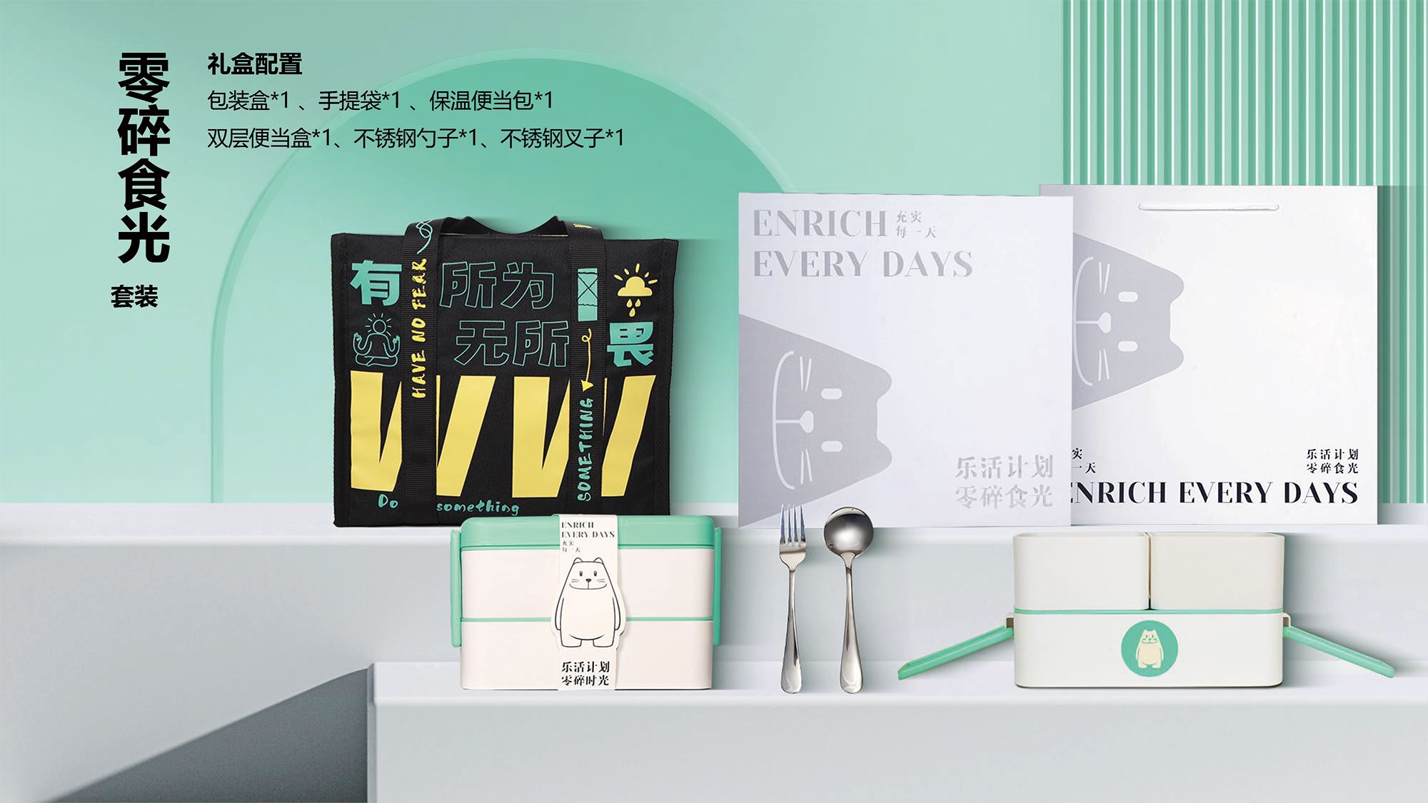 貪吃貓文創(chuàng)零碎食光休閑日式便當盒套裝 禮品已成功加入PPT!