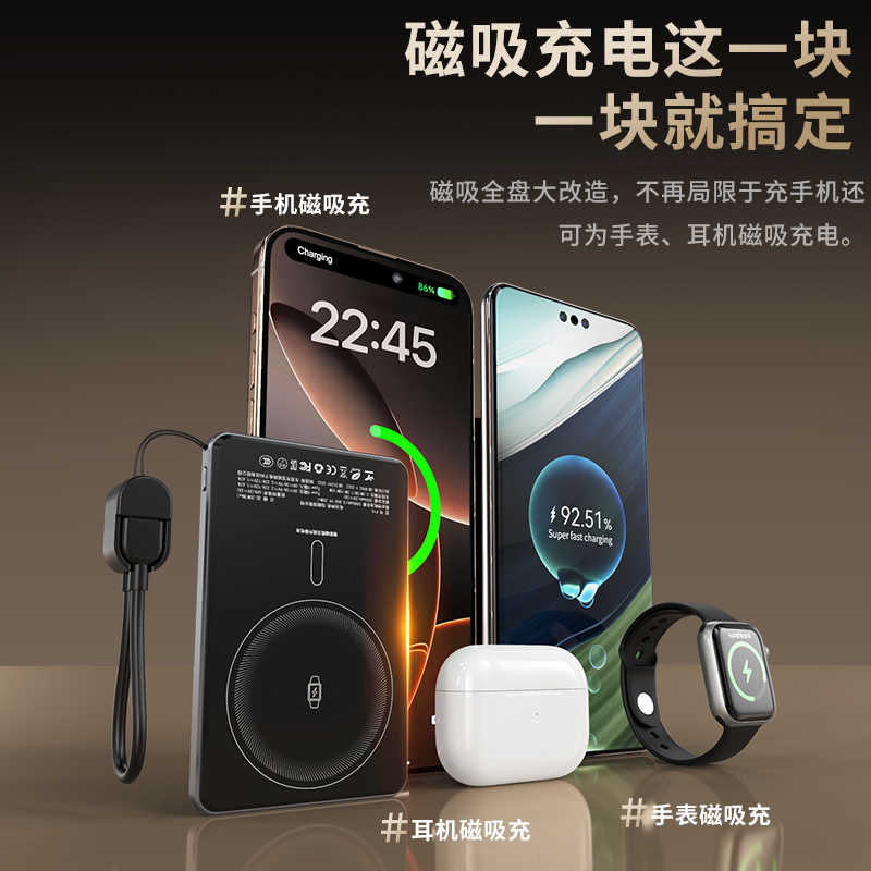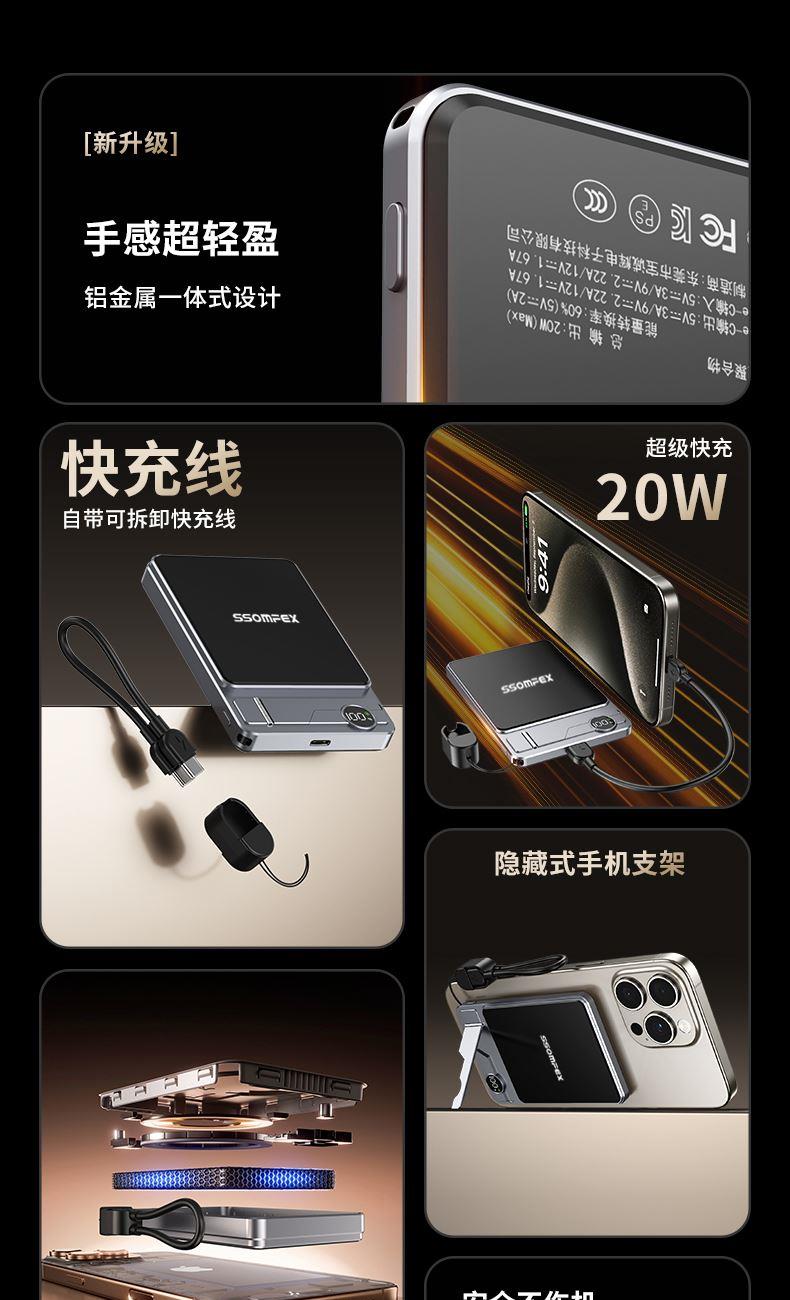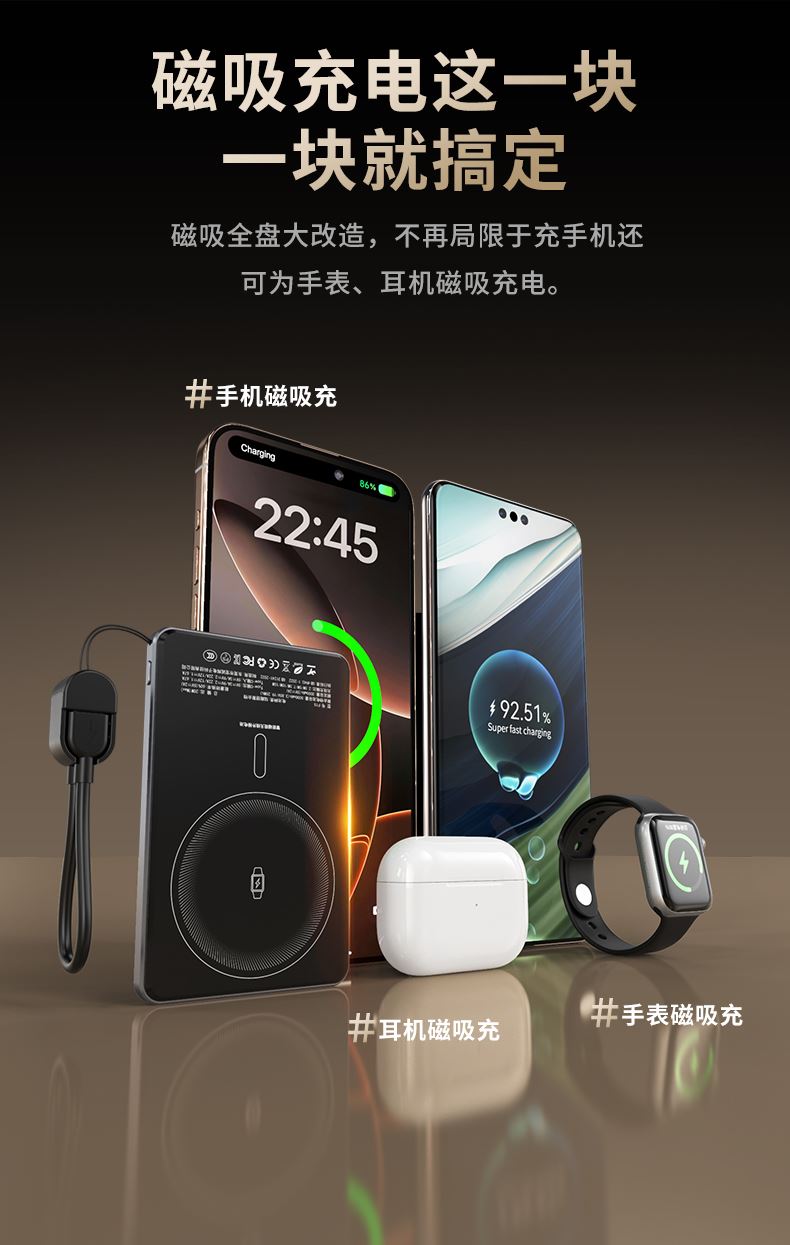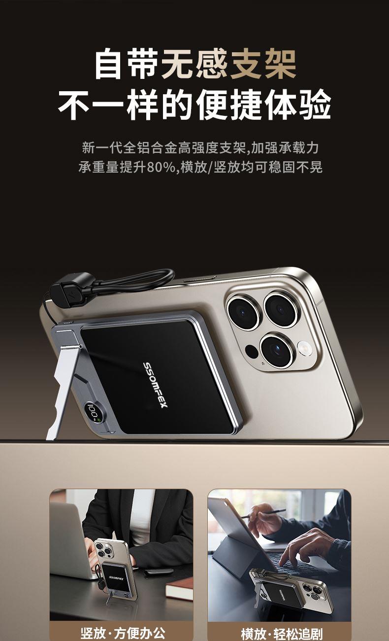 磁吸快充,自帶數(shù)顯,吸力超強,隱形便攜支架